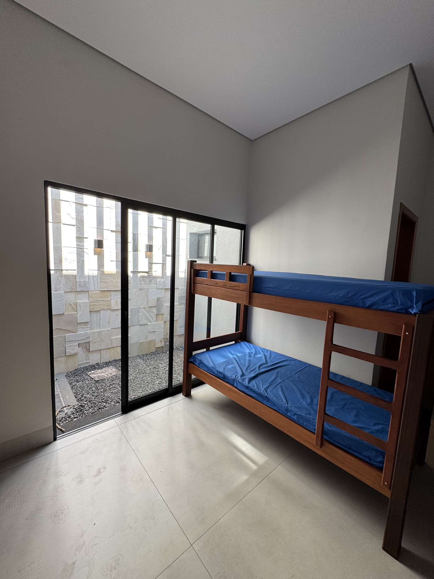 Banheiros individuais masculino e feminino, além de um quarto com três beliches para oferecer comodidade extra.
