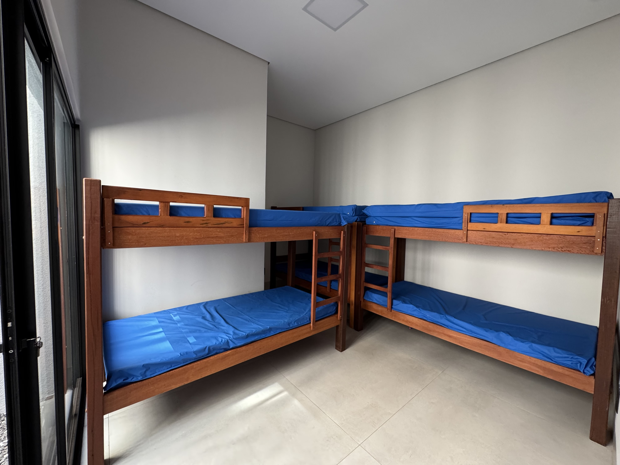 Banheiros individuais masculino e feminino, além de um quarto com três beliches para oferecer comodidade extra.